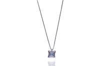 Collana con topazio, in oro bianco 750, topazio taglio a gradini di forma quadrata, lunghezza 40 cm, imperfezioni - Grammi 3,20
