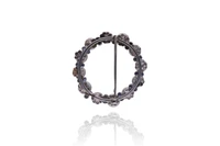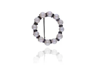 Spilla con zaffiri e perle coltivate, realizzata in oro bianco 750, zaffiri taglio composito di forma rotonda, perle coltivate 6-6,5 mm, parti scheggiate, difetti - Grammi 11,50