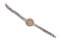 Bracciale con medaglia in oro 900, montatura realizzata in argento e oro giallo 750, lunghezza 17 cm, parti rotte, difetti - Grammi 26,20