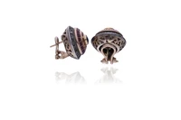 Paio di orecchini con zaffiri, rubini e diamanti, realizzati in oro 500 e argento, diamanti taglio rosa ct 0,30 totali circa, zaffiri e rubini tagli e forme diversi, chiusura con perni e clip, un rubino mancante, parti scheggiate, difetti - Grammi 15,60