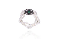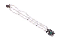 Bracciale di perle coltivate con diamanti e smeraldo
