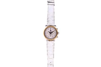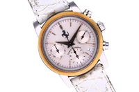 Girard Perregaux X Ferrari, cronografo in acciaio e oro, ref. 8020, movimento automatico, calibro GP 2280-681, BJ431, vetro zaffiro, quadrante argentato, cinturino pelle e fibbia commerciali, dim. 38 mm, movimento e viti con ossidazioni, difetti, non funzionante, si raccomanda assistenza tecnica - Grammi 74,10