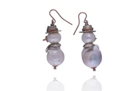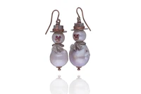Paio di orecchini con perle coltivate, diamanti e pietre, realizzati in oro 375 ed argento, diamanti taglio rosa, ct 0,10 totali circa, perle coltivate 10-14 mm, un diamante mancante, imperfezioni - Grammi 18,10