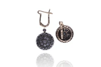 Paio di orecchini con diamanti, realizzati in oro 585 ed argento, diamanti taglio rosa, ct 0,50 totali circa, scheggiature, imperfezioni - Grammi 13,70