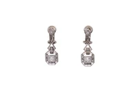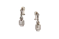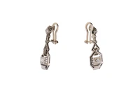 Paio di orecchini Art Deco' con diamanti in oro bianco 750, diamanti vari tagli ct 0,50 ca tot, colore H-J, purezza VVS-VS, lievi imperfezioni e scheggiature, chiusure a clips non coeve, lunghezza cm 3 - Grammi 6,50