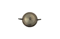 Zuccheriera in argento 800, stile impero, con manici ad elementi floreali e piedini realizzati a traforo, ossidazioni e imperfezioni, h cm 13 - Grammi 163,00
