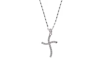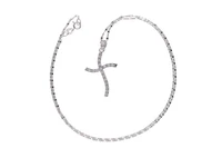 Catena a maglia marina stilizzata con ciondolo a forma di croce ornato da pietre incolori, in oro bianco 750, imperfezioni, dimensioni cm 3x1,8, lunghezza cm 42 - Grammi 3,00