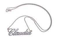 Collier con con nome Claudia impreziosito con piccola pietra incolore, realizzato in oro bianco 750, imperfezioni, lunghezza cm 46 - Grammi 4,90