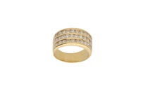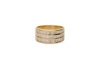 Anello a fascia con pietre incolori, in oro giallo 750, imperfezioni, misura 19 - Grammi 7,90