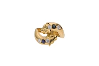 Anello contrarie con pietre, realizzato in oro giallo 750, imperfezioni, misura 16 - Grammi 7,10