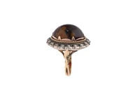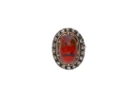 Anello con diamanti e pietra, in oro giallo 750 e parte in argento, diamanti taglio rosa ct 0,30 ca tot, scheggiatura ed imperfezioni, misura 14 - Grammi 6,90