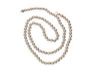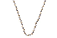 Collana composta da sfere realizzate in oro bianco e giallo 750, con finitura diamantata, imperfezioni, sfere mm 6, lunghezza cm 62 - Grammi 19,90