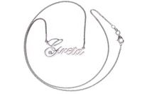 Collier con elemento centrale con il nome Greta, impreziosito da un diamante, realizzato in oro bianco 750, diamante taglio brillante ct 0,02 ca colore G-I purezza VVS-VS, imperfezioni, lunghezza cm 45 ca - Grammi 3,30