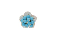 Anello a fiore con petali di madreperla e sfere di pietre, in oro giallo 750, imperfezioni, misura 15 - Grammi 9,00
