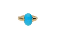 Anello con turchese cabochon, realizzato in oro giallo 750, imperfezioni, misura 18, dim turchese mm 14x10 ca - Grammi 5,30