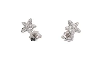Paio di orecchini dalla forma di stella marina, impreziositi da diamanti, realizzati in oro bianco 750, diamanti taglio brillante ct 0,40 ca tot, colore G-I, purezza VVS-VS, chiusura perno e fermo, imperfezioni, diametro cm 1 - Grammi 2,90