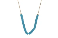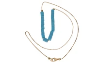 Collana a maglia veneziana con elementi scorrevoli in pietra azzurra, realizzata in oro giallo 750, imperfezioni, lungh. cm 42 - Grammi 4,90