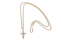 Collana a codoncino con ciondolo decorato da pietre incolori, realizzati in oro bicolore 750, imperfezioni, dimensioni cm 2,5x1,5, lunghezza cm 42 - Grammi 2,40