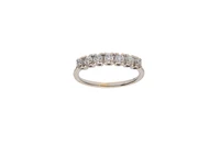 Veretta con sette diamanti, realizzata in oro bianco 750, diamanti taglio brillante ct 0,35 ca tot, colore H-J, purezza VVS-VS, imperfezioni, misura 13 - Grammi 2,10