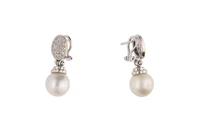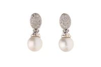 Paio di orecchini pendenti con diamanti e perle coltivate
