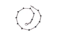 Demi parure composta da orecchini, bracciale e collier con zaffiri e pietre sfaccettate, realizzati in oro bianco 750, imperfezioni, orecchini con chiusura a perno e fermo lunghezza cm 2,7, bracciale cm 19 e collier cm 45 - Grammi 14,80