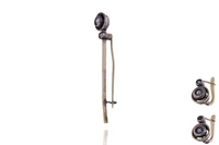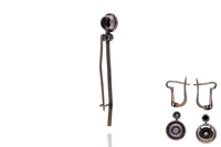 Parure composta da paio di orecchini con pendenti staccabili, spilla, realizzati in oro giallo 750, parti in argento, diamanti taglio vecchio ct 0,35 totali circa, colore I-K, purezza VS-SI, chiusura a monachina, difetti - Grammi 9,00