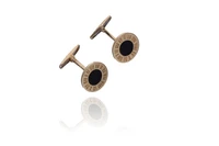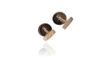 Paio di gemelli con pietra, in oro giallo 750 e metallo, parti scheggiate, difetti - Grammi 11,40