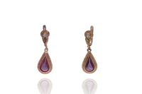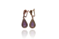 Paio di orecchini pendenti con pietre, realizzati in oro giallo 750, chiusura a monachina, difetti - Grammi 4,70