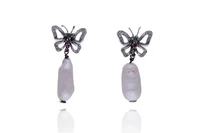 Orecchini con perle coltivate, rubini, smeraldi e diamanti