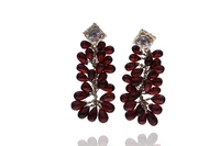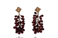 Paio di orecchini con quarzi e granati, realizzati in oro giallo 750 con fermi in oro bianco 750, parti mancanti, imperfezioni - Grammi 18,80