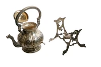 Malinverni Umberto, samovar realizzato in argento 800, con base e porta stoppino, decorato a cesello con elementi floreali e volute, becco con elemento zoomorfo, h cm 41 x 27, imperfezioni - Grammi 2.682,40