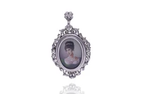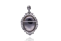 Spilla/ciondolo con ritratto di donna con pietra, realizzata in oro bianco 750 e parte in altro materiale, imperfezioni - Grammi 9,10