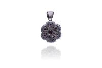 Ciondolo con diamanti e rubini, realizzato in oro bianco 750, diamanti taglio brillante ct 0,60 totali circa, colore I-L, purezza VS-SI, difetti - Grammi 9,50
