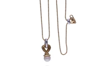 Collana con ciondolo con perla coltivata e diamanti, realizzata in oro bicolore 750, perla coltivata 7,30 mm, diamanti taglio brillante, ct 0,05 totali circa, lunghezza 45,5 cm, difetti - Grammi 6,70