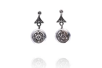 Paio di orecchini con diamanti in oro bianco 750, parti in argento, diamanti taglio rosetta, parti saldate, imperfezioni, lunghezza cm 2,5 circa - Grammi 5,60