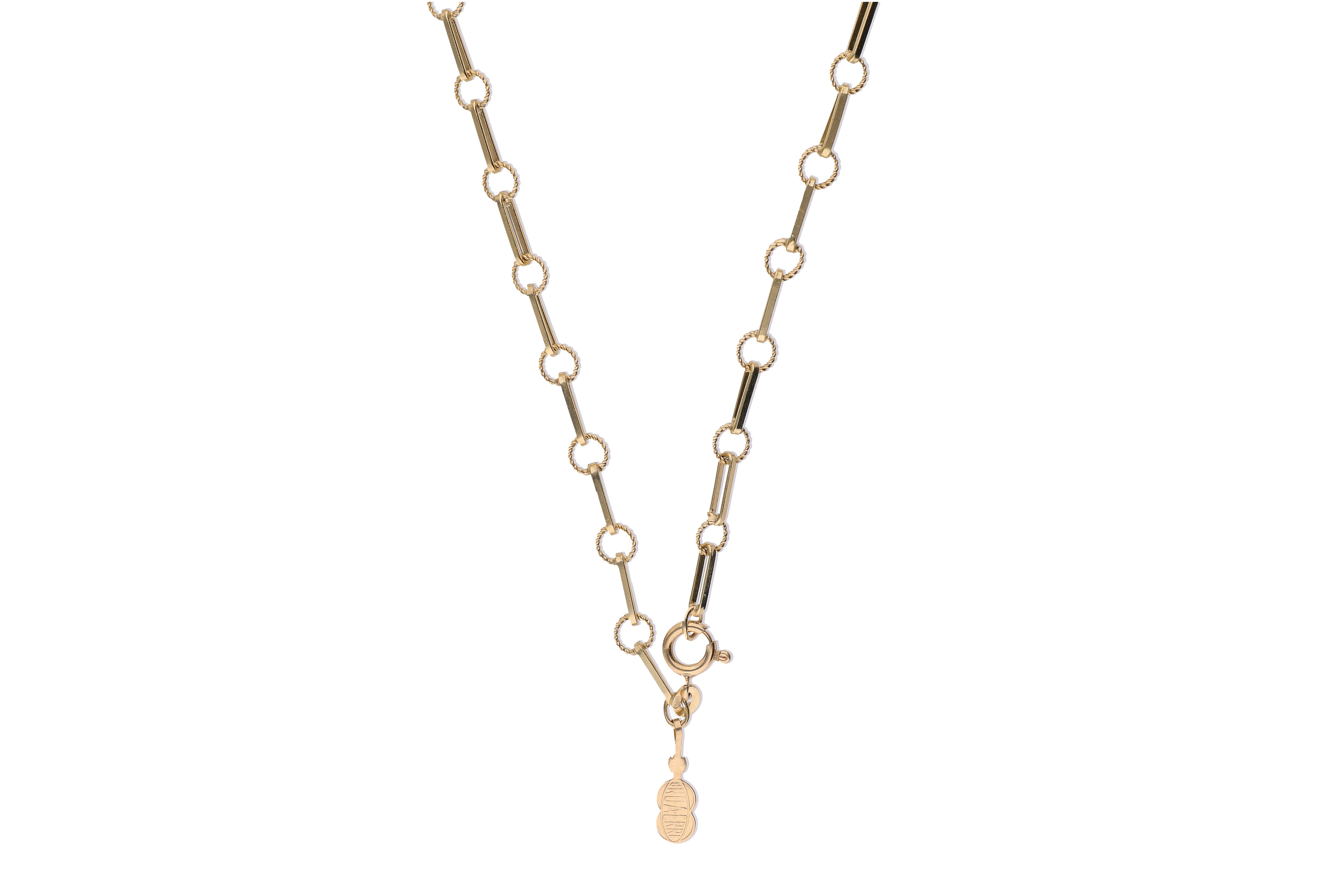 Catena in oro giallo 750, con alternanza di maglie rettangolari e rotonde, imperfezioni, lunghezza cm 60 - Grammi 16,90