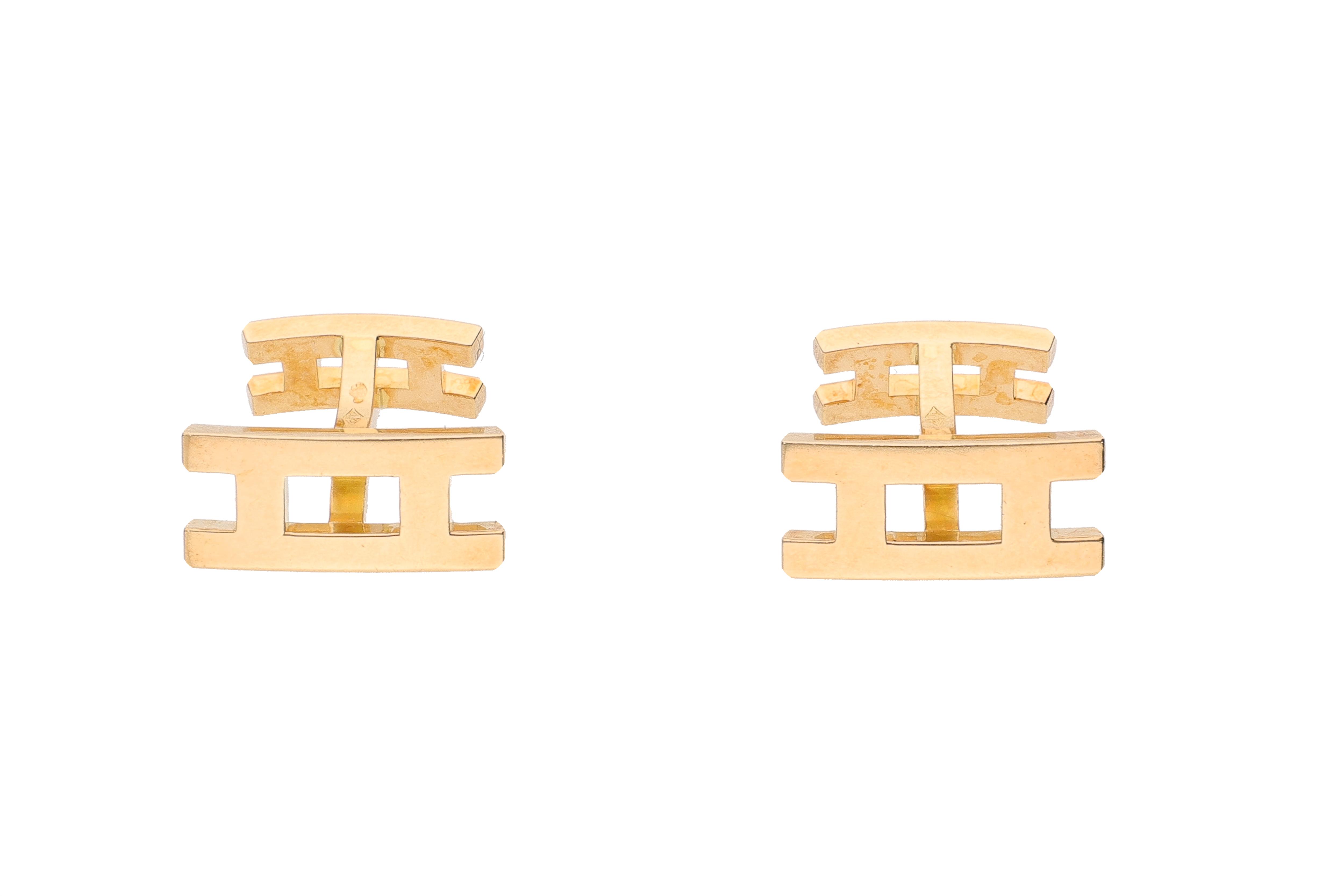 Hermes parallelo, paio di fermapolsi realizzati in oro giallo 750, imperfezioni, dim maggiore cm 1,6x0,7 - Grammi 11,10