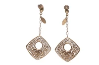 Paio di orecchini pendenti, realizzati in oro giallo 750, chiusura con perni e fermi, difetti - Grammi 5,00