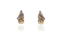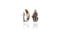 Paio di orecchini con pietre realizzati in bicolore 750, con perni e clip, imperfezioni - Grammi 12,90