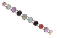 Bracciale con ametiste, calcedoni, amazzonite e pietre, realizzato in oro 500, punzoni egiziani, lunghezza 18,5 cm, scheggiature, chiusura difettosa, difetti - Grammi 31,20