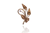 Spilla con pietra, realizzata in oro giallo 750, punzoni ante 1969, difetti - Grammi 6,10