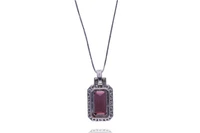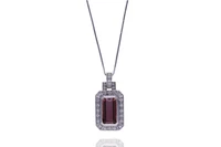 Collana con ciondolo con tormalina rosa e diamanti realizzati in oro bianco 750, tormalina rosa taglio a gradini forma rettangolare ad angoli tronchi, diamanti taglio brillante ct 0,50 totali circa, colore I-K purezza VS-SI, lunghezza 41 cm, imperfezioni - Grammi 7,30