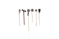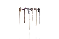 Sei spille con pietre, perle coltivate e diamanti realizzate in oro giallo 750 e oro basso e argento, diamanti taglio rosa ct 0,20 totali circa, difetti - Grammi 11,10