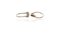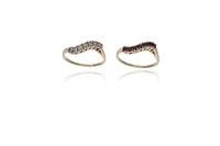 Coppia di anelli con diamanti e rubini, realizzati in oro giallo 750, rubini taglio composito di forma rotonda, diamanti taglio brillante, ct 0.20 totali circa, colore I-K, purezza VS-SI, misure 18,5, parte rotta, difetti - Grammi 5,80