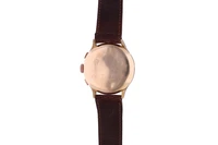 Eberhard Extra-Fort, orologio in oro, movimento carica manuale, cronografo con piccoli secondi a ore 9, cinturino pelle, fibbia metallo, dimensioni 39 mm., quadrante ossidato, pulsante bloccato, parti ammaccate e rigate, difetti, si raccomanda assistenza tecnica - Grammi 53,80