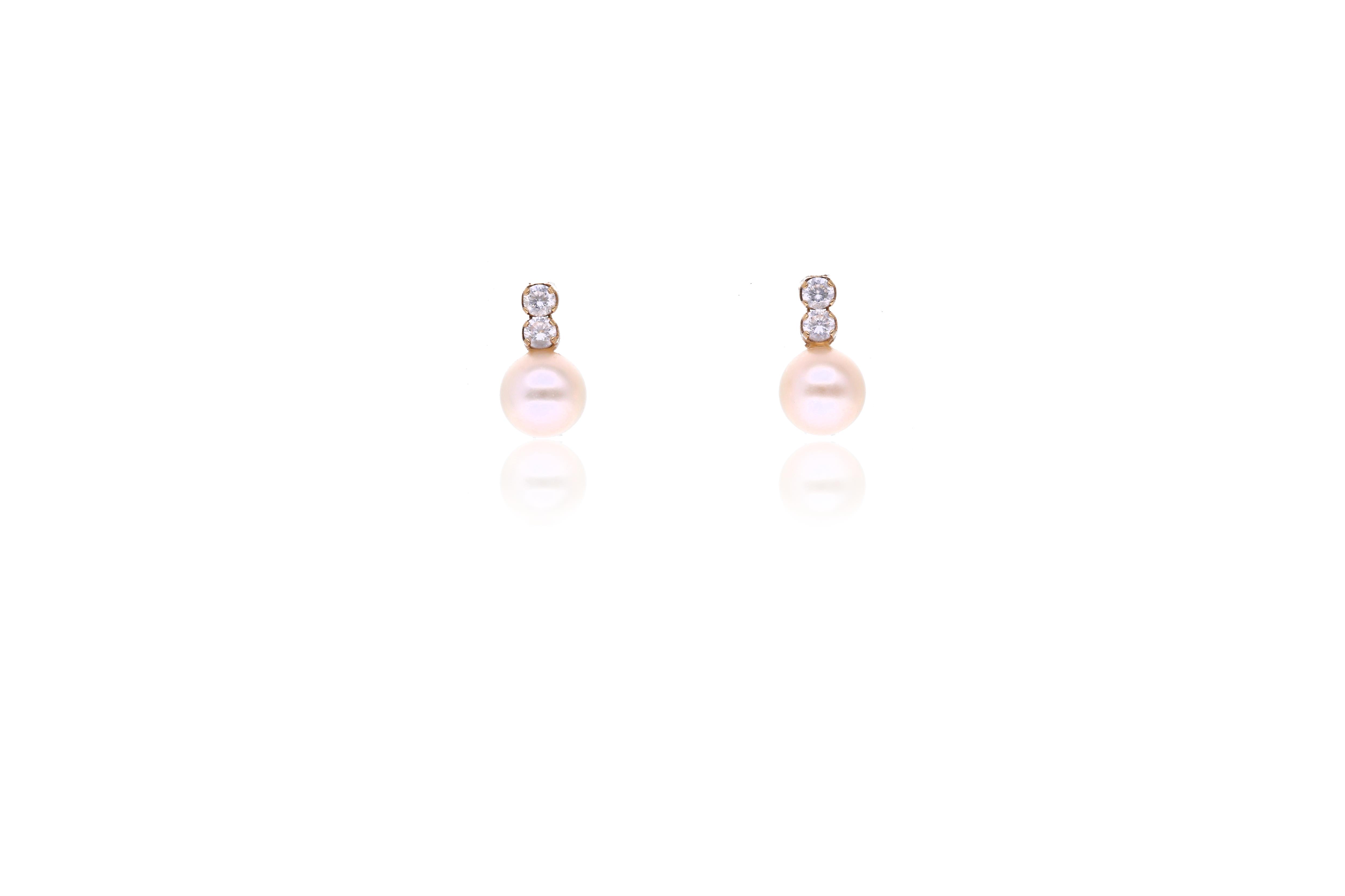 Paio di orecchini con perle e pietre, in oro 750, perle 5,5 mm, lunghezza 1 cm - Grammi 1,10