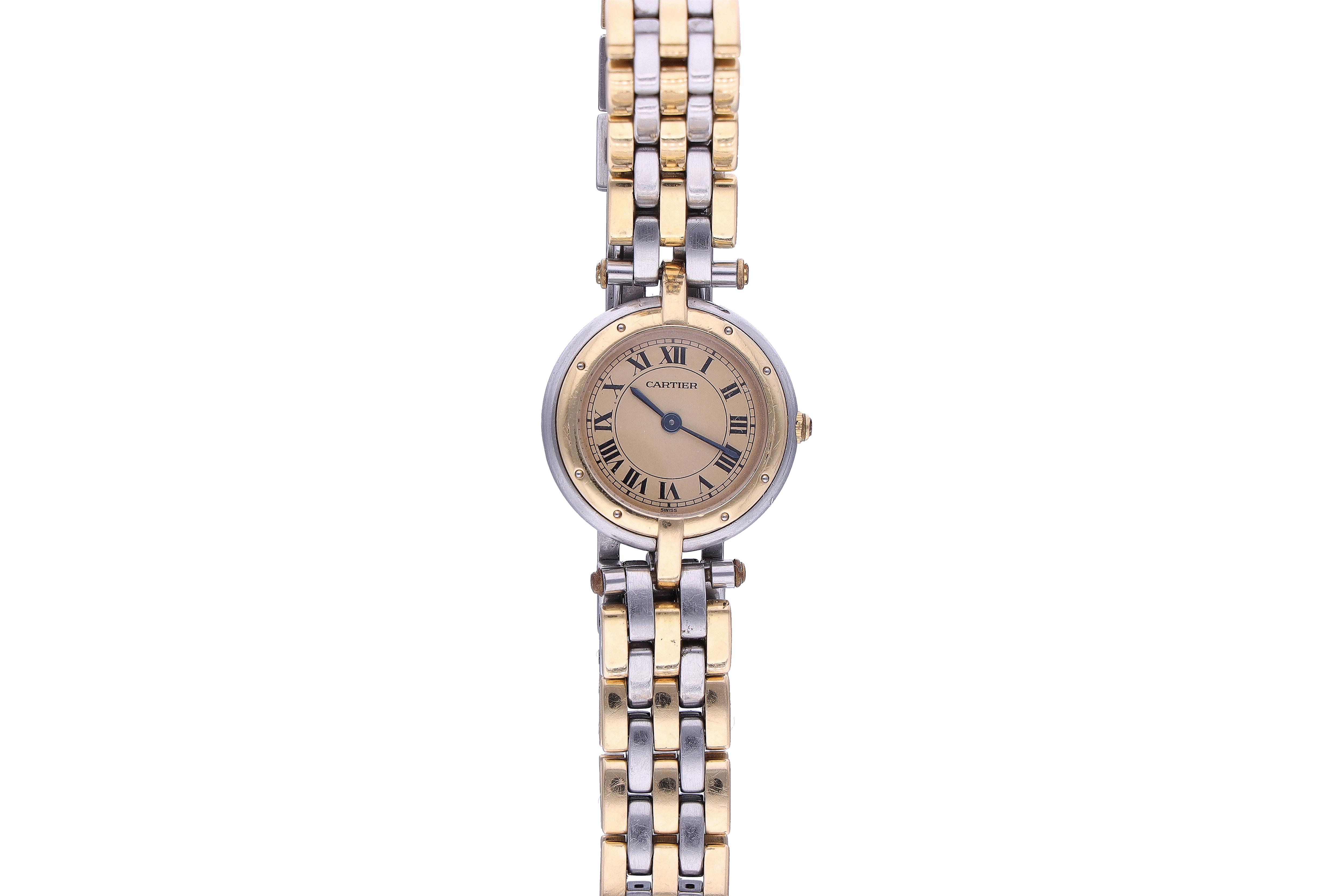 Cartier Panthere Ronde, orologio in acciaio e oro, mov al quarzo, cal. Cartier 057, ref. 1057920, mat. 0****, brac e fib bideployante Cartier in acc e oro con parti non pertinenti, dim 24 mm, corona di carica rotta, scatola, garanzia e libretti, non funzionante, difetti, si raccomanda ass tecnica - Grammi 45,70