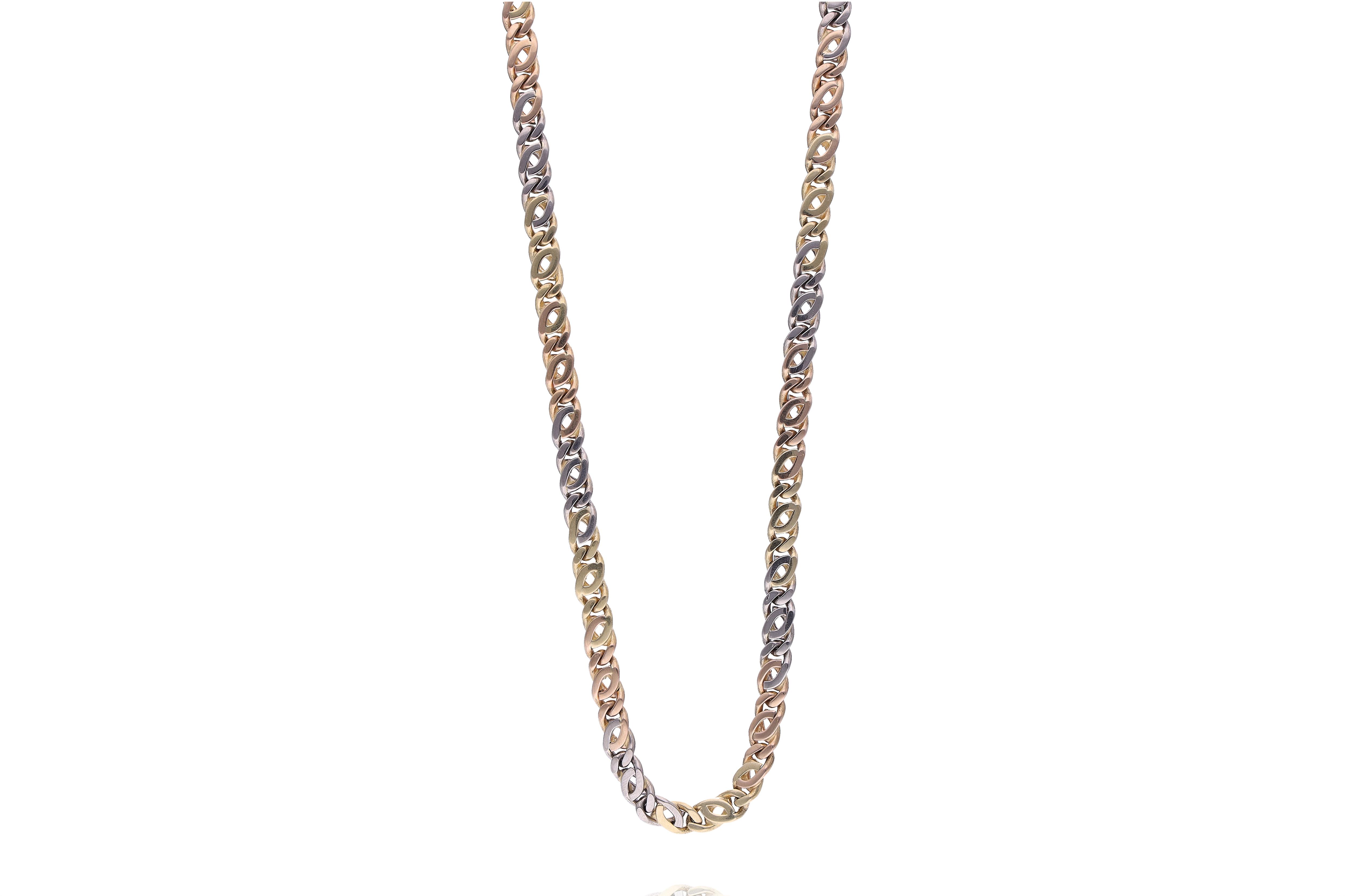 Collana realizzata in oro tre colori 750, lunghezza 40,5 cm, imperfezioni - Grammi 32,20