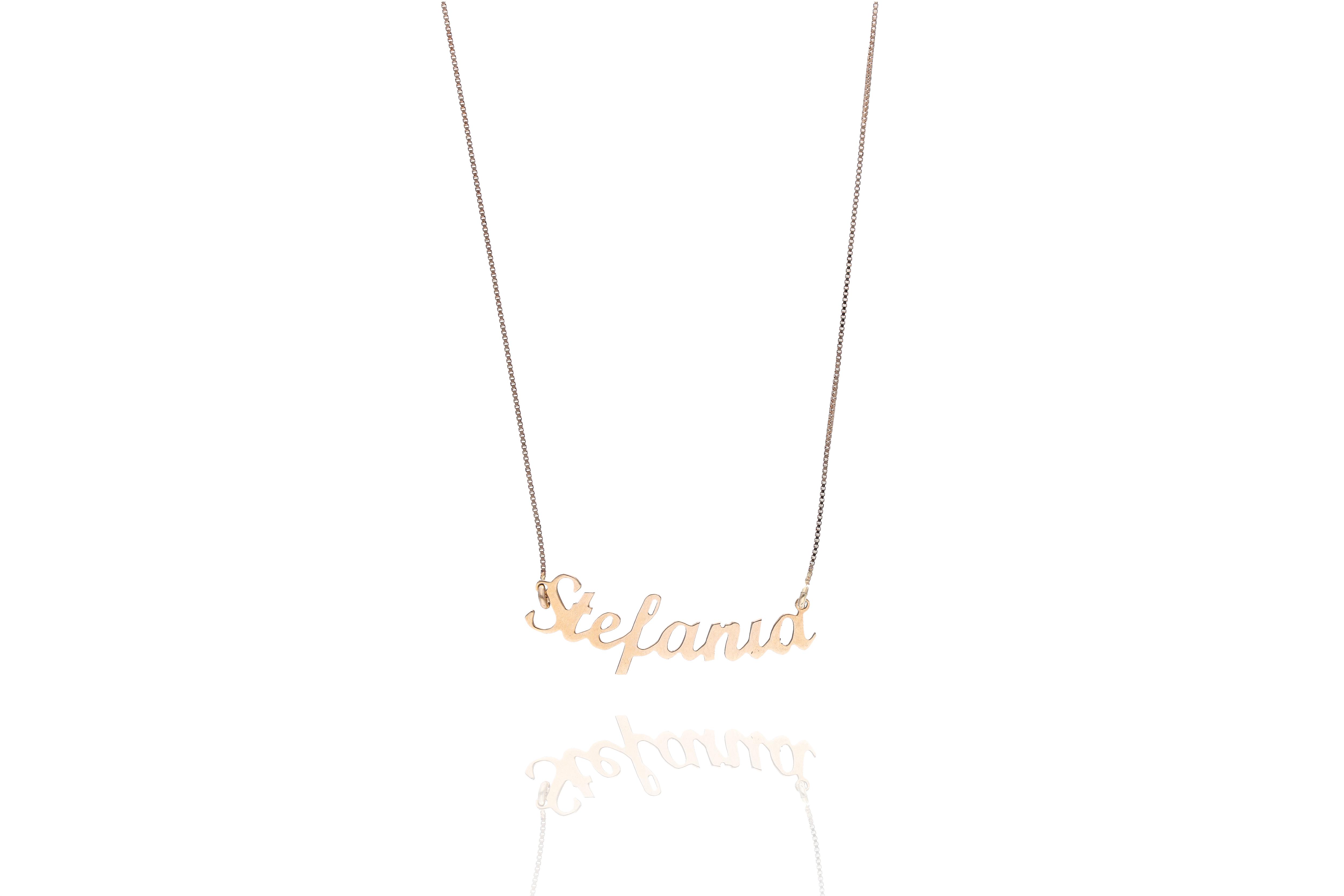Collana personalizzata con nome "Stefania", realizzata in oro giallo 750, lunghezza regolabile 44 e 47 cm, imperfezioni - Grammi 3,40