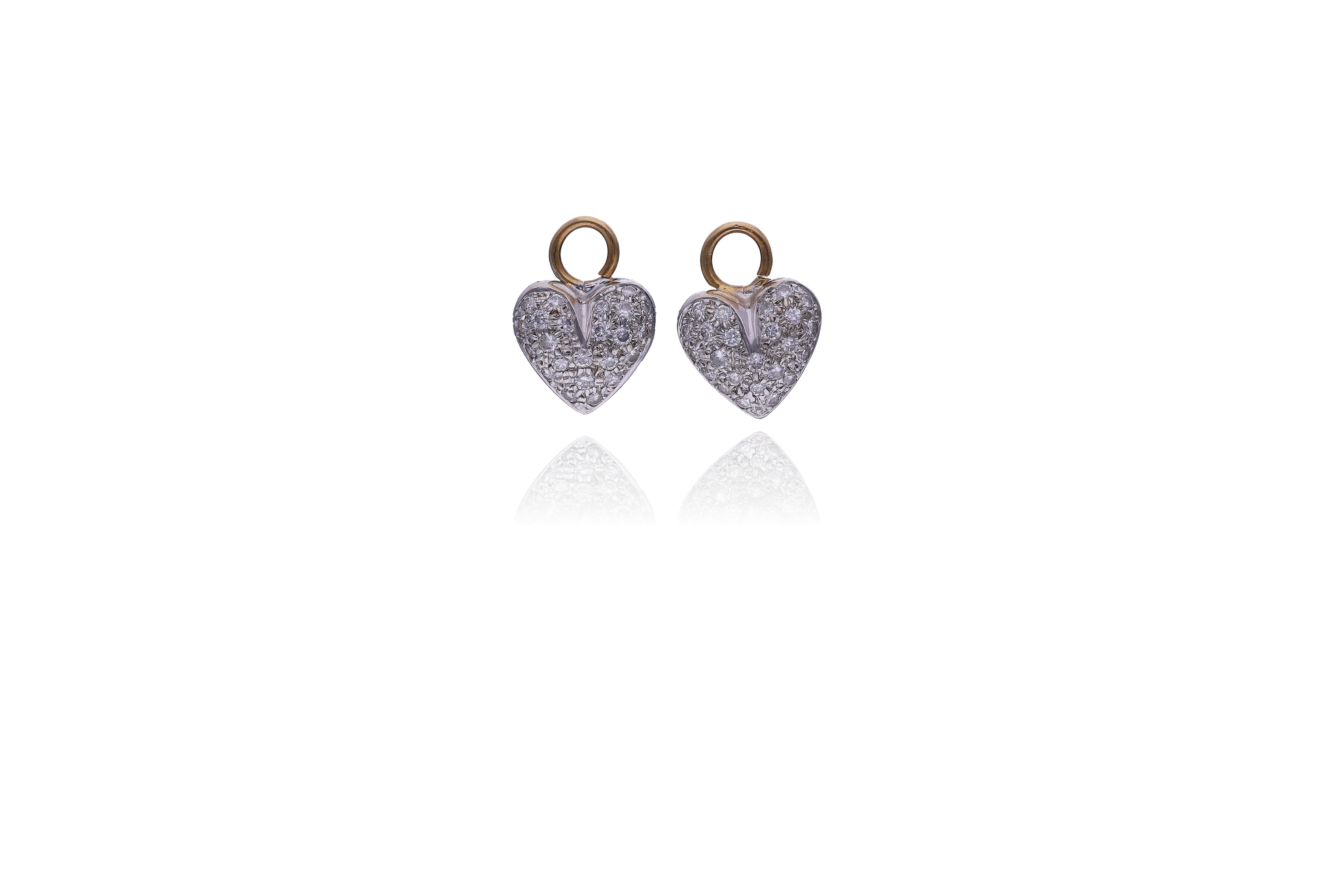 Coppia di ciondoli con diamanti, realizzati in oro bicolore 750, diamanti taglio brillante, ct 0,60 totali circa, colore H-J, purezza VS-SI, imperfezioni - Grammi 4,20